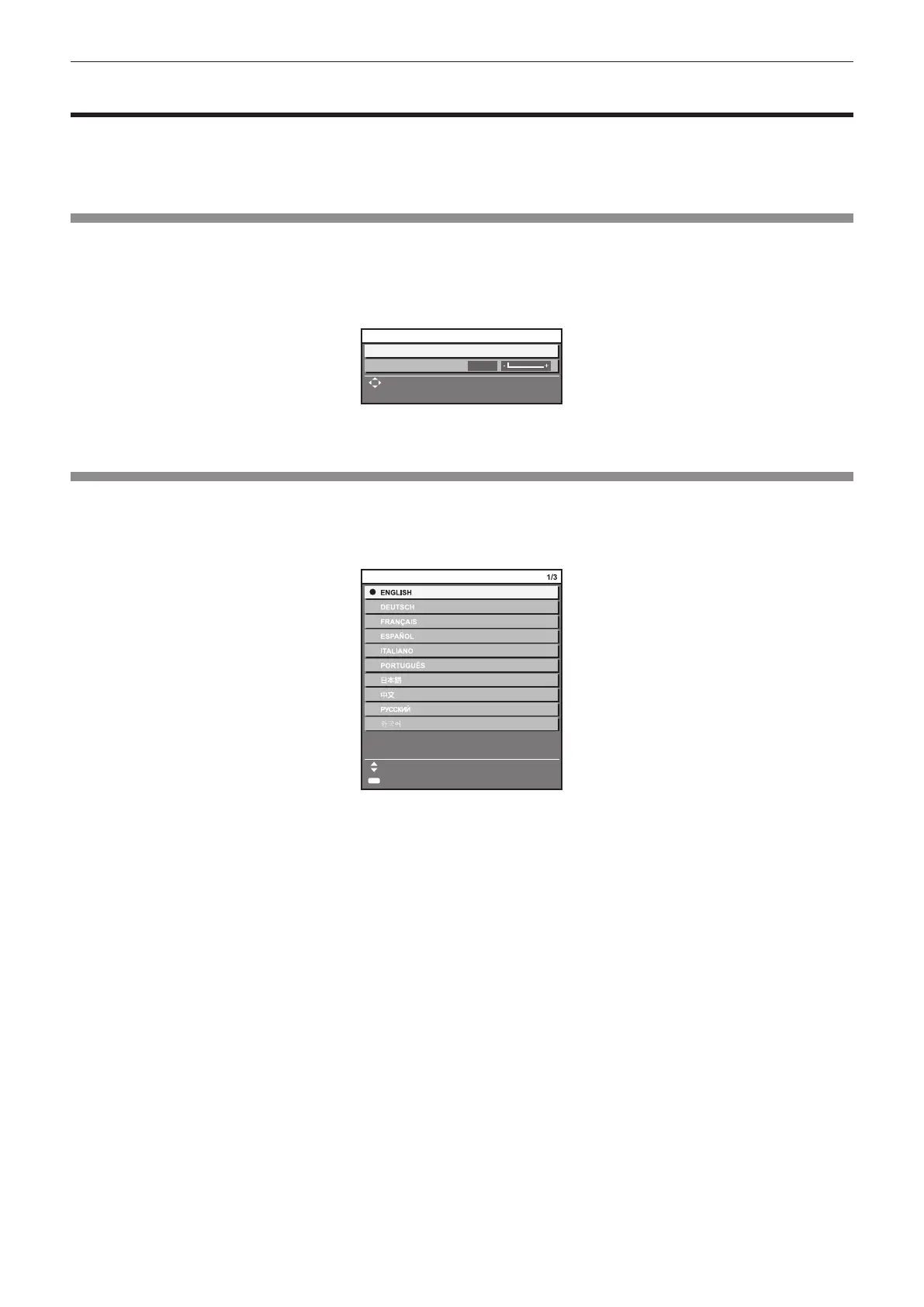[INITIALIZE] is executed, the focus adjustment screen is displayed after projection starts, then the initial setting screen is displayed. Set them