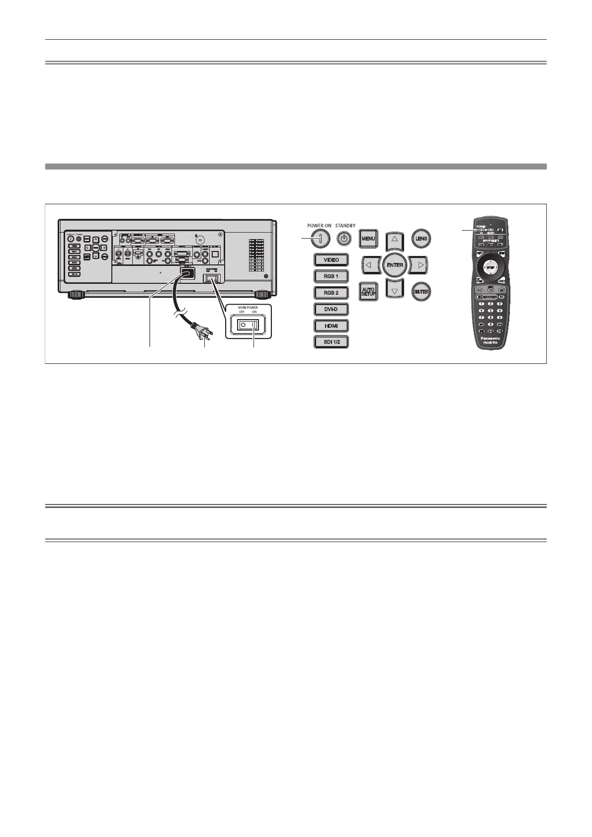 f If the [PROJECTOR SETUP] menu → [STANDBY MODE] is set to [ECO], it may take approx. 10 seconds longer before the projector starts