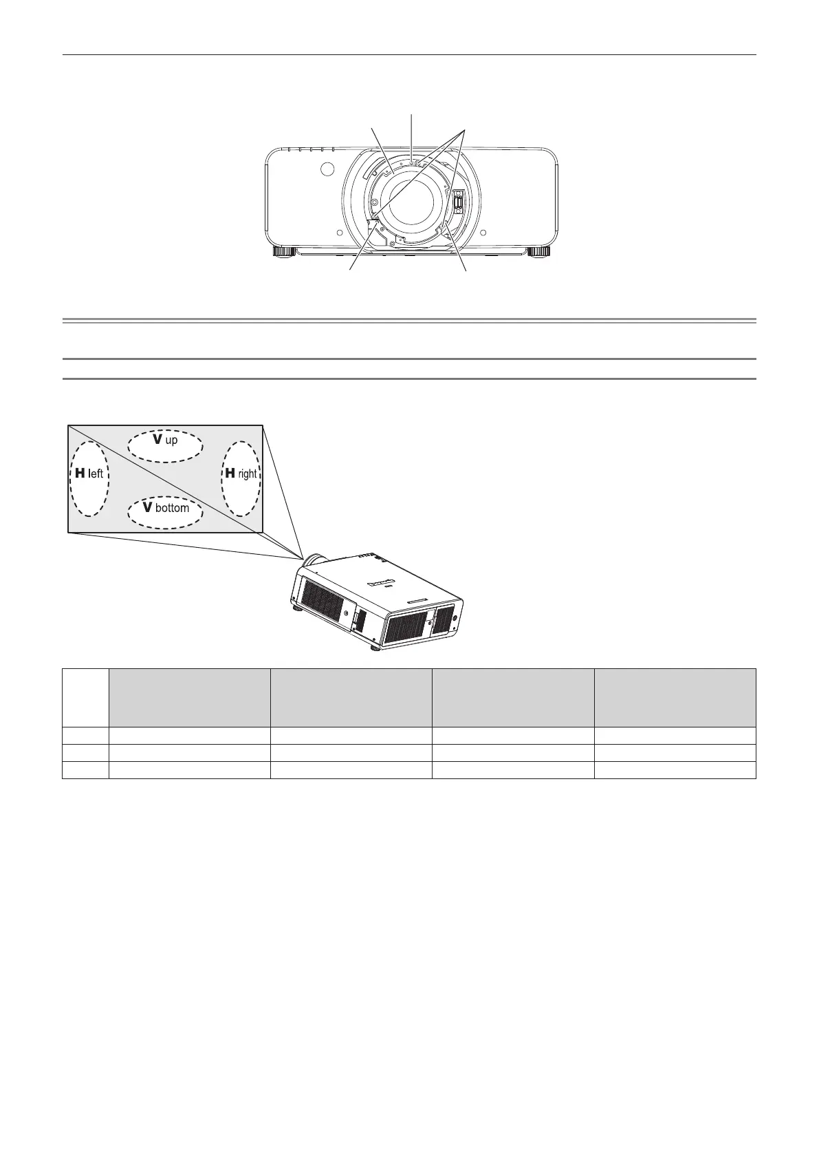 r Front view diagram of the lens mounter (viewed from the screen side)