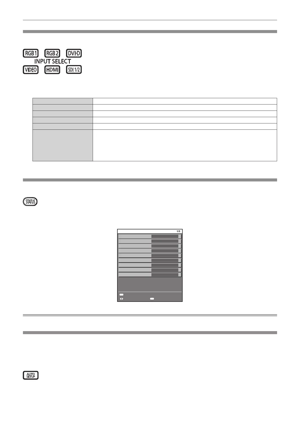 f This can be displayed from the [PROJECTOR SETUP] menu → [STATUS] (x page 119).