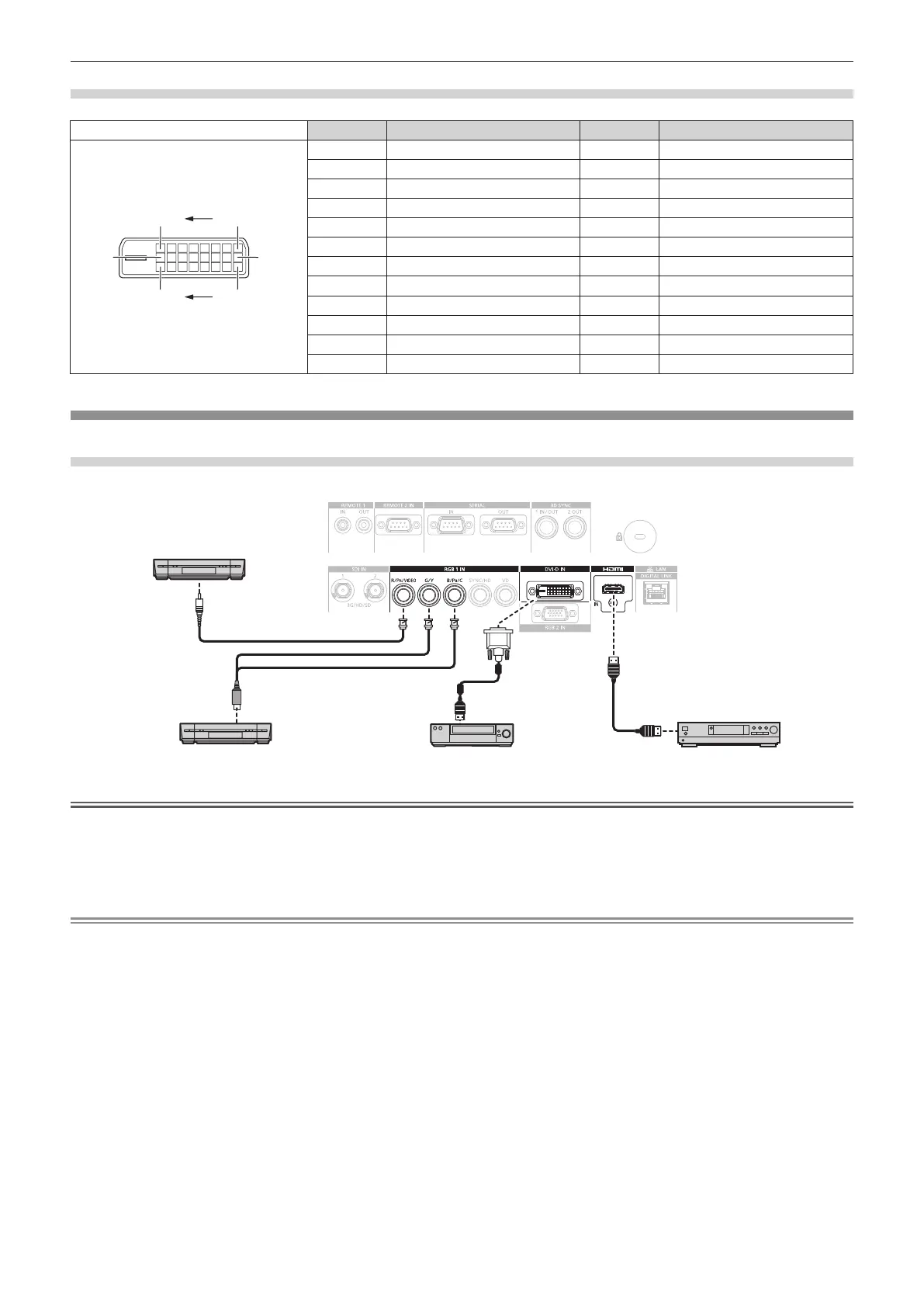 f The <DVI-D IN> terminal can be connected to HDMI- or DVI-D-compliant devices. However, images may not appear or may not be