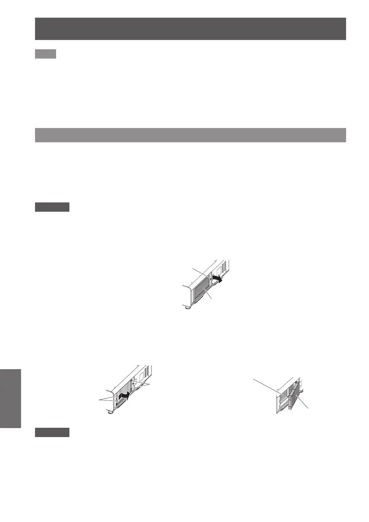 Make sure that the air lter unit is properly attached before using the projector. If it is not properly attached, the