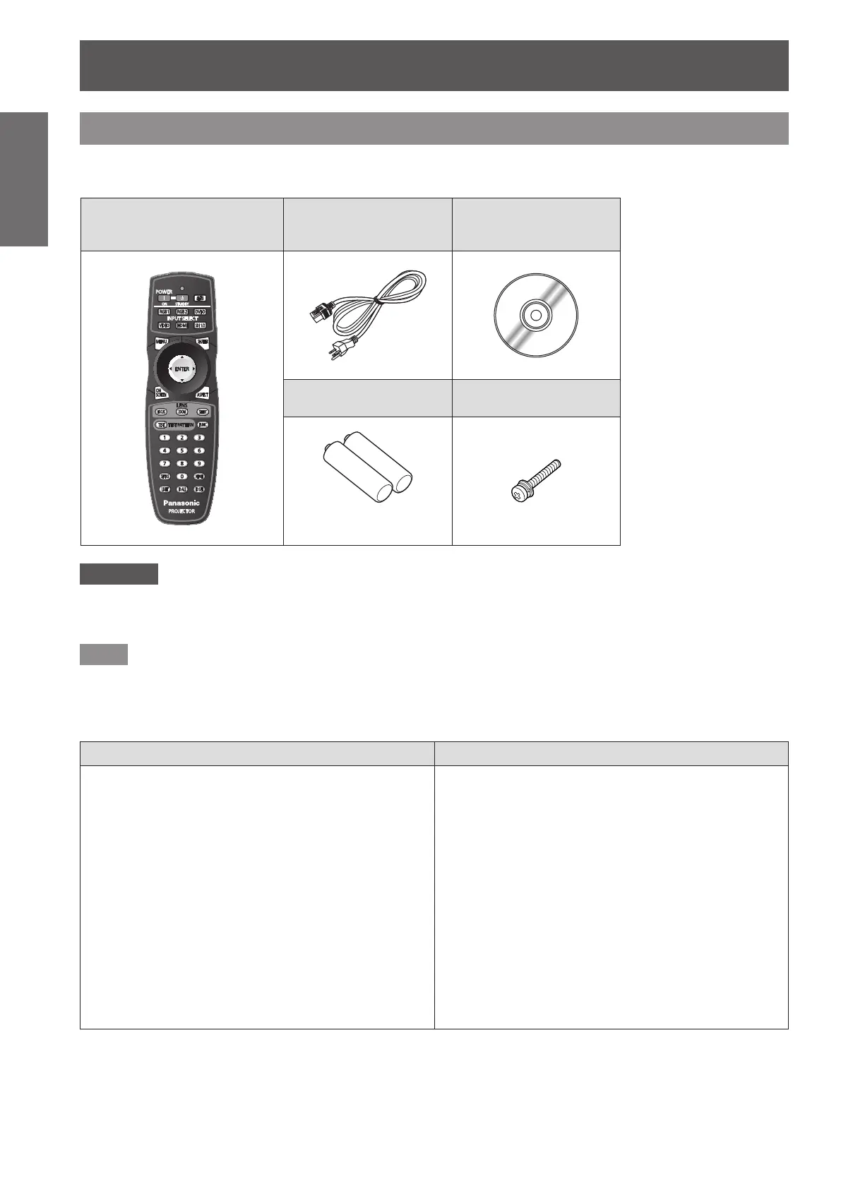 Make sure that the following accessories are provided with your projector. Numbers enclosed in < > show the