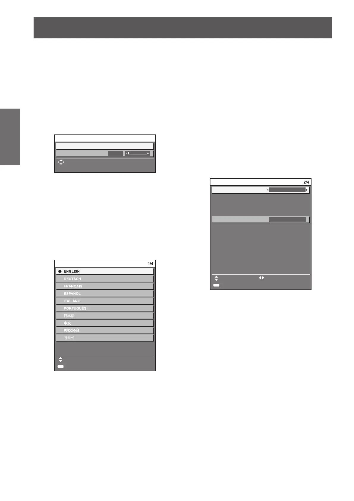 When the projector is switched on for the rst time after purchase as well as when [ALL USER DATA] (