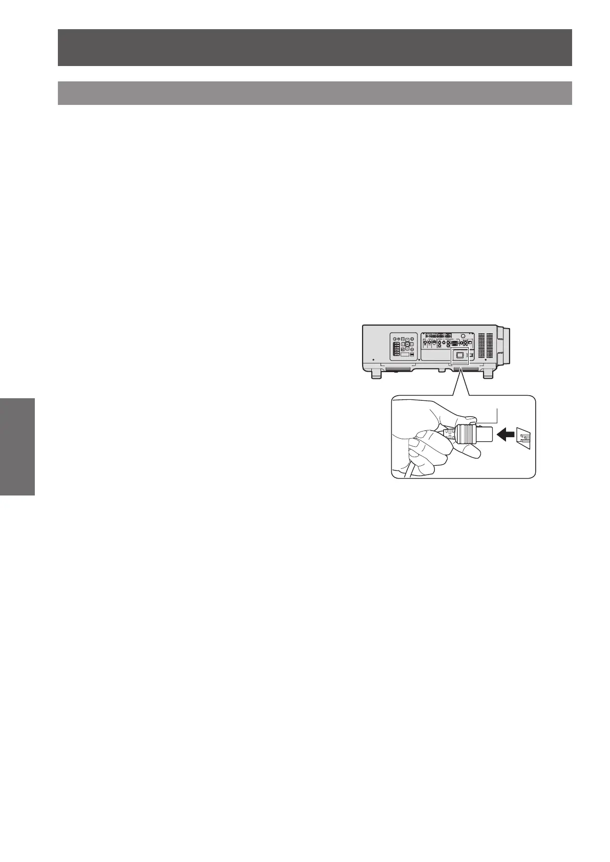 Make sure that the supplied power cord is fully inserted into the projector to prevent removal of the