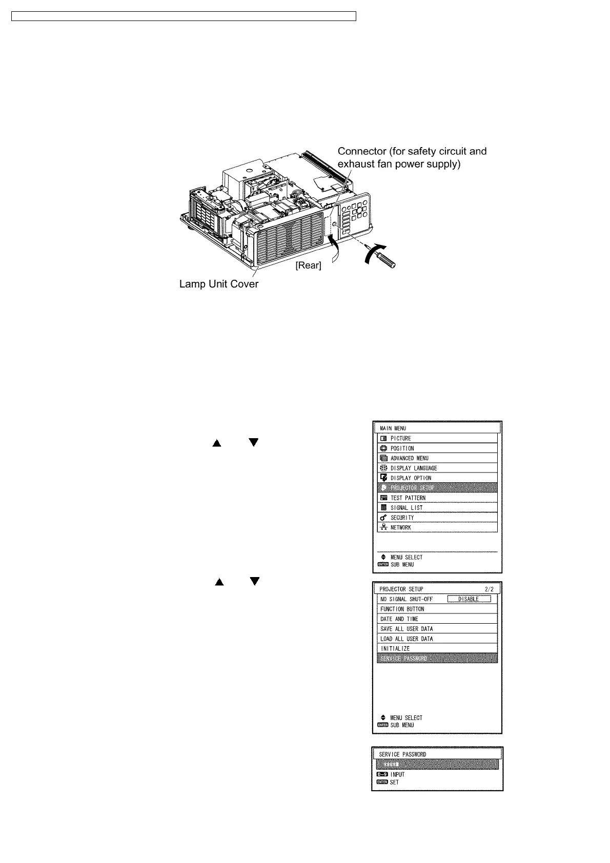 (3) Select “SERVICE PASSWORD using the or buttons and