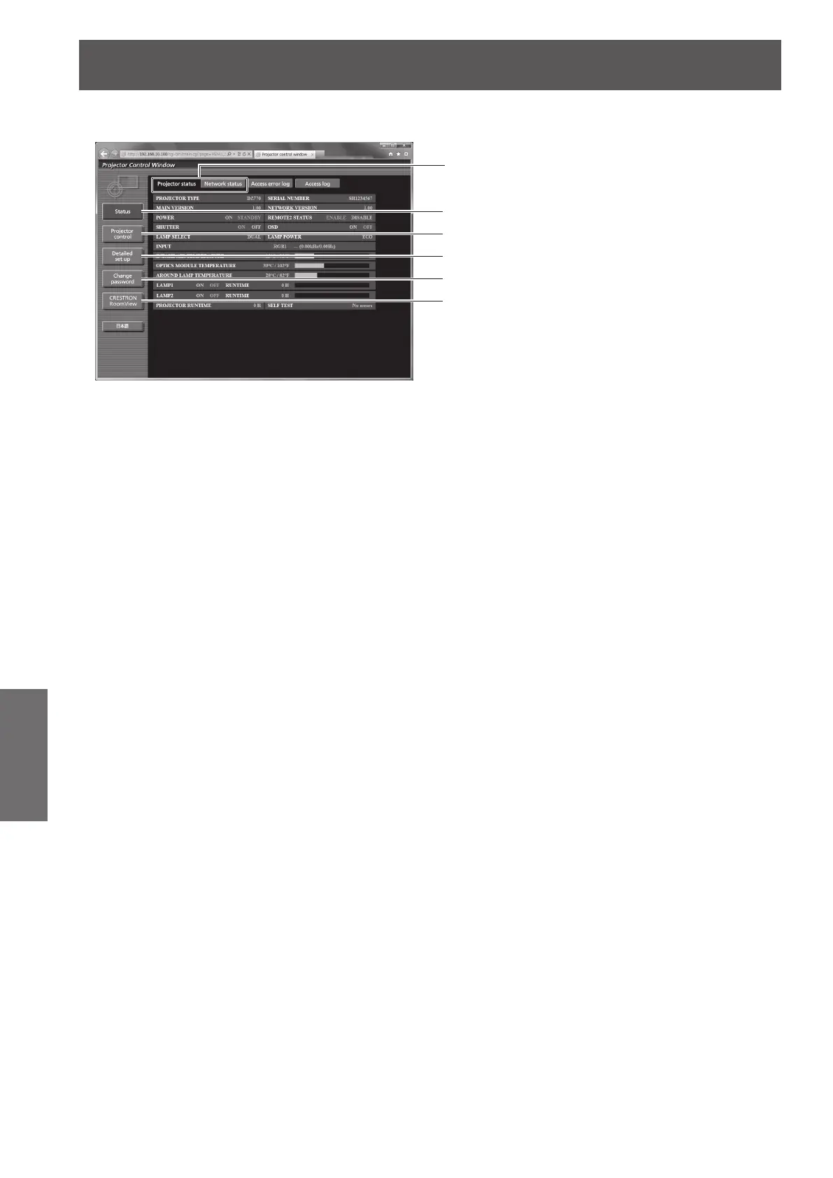 The status of the projector is displayed by clicking