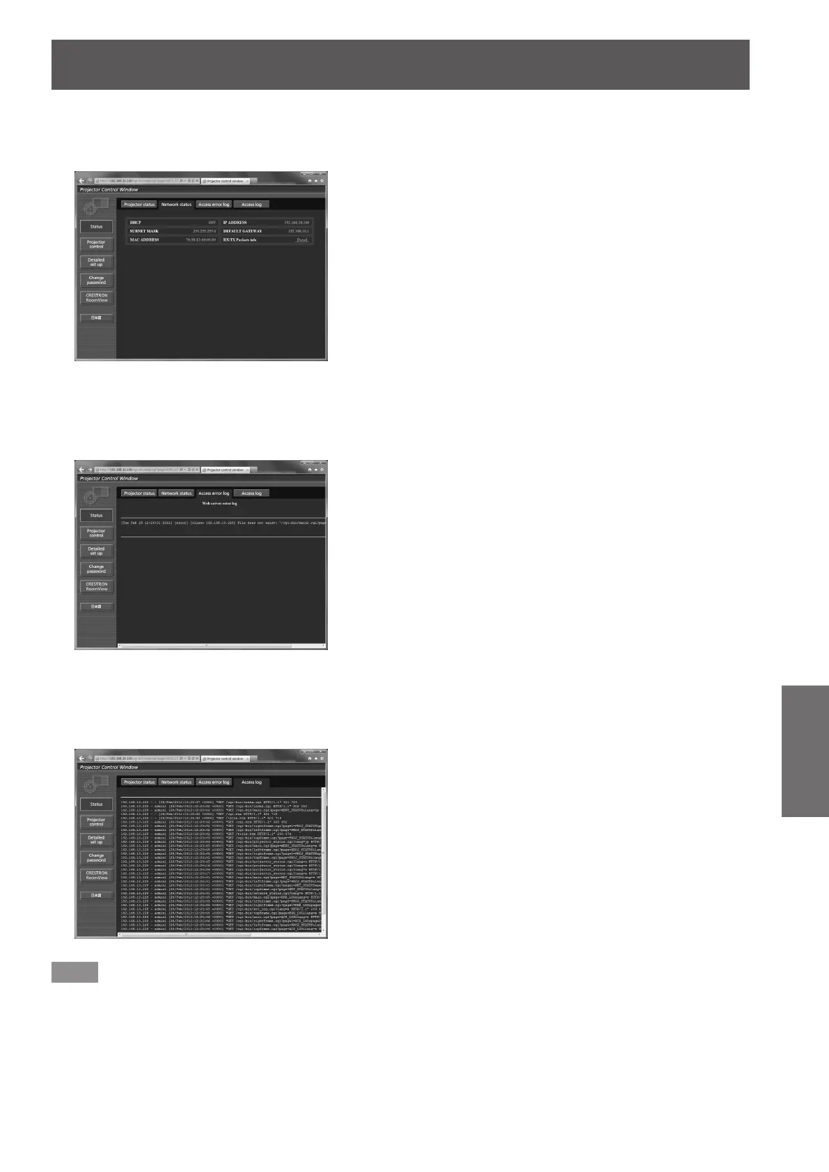 Click [Status] → [Access error log].