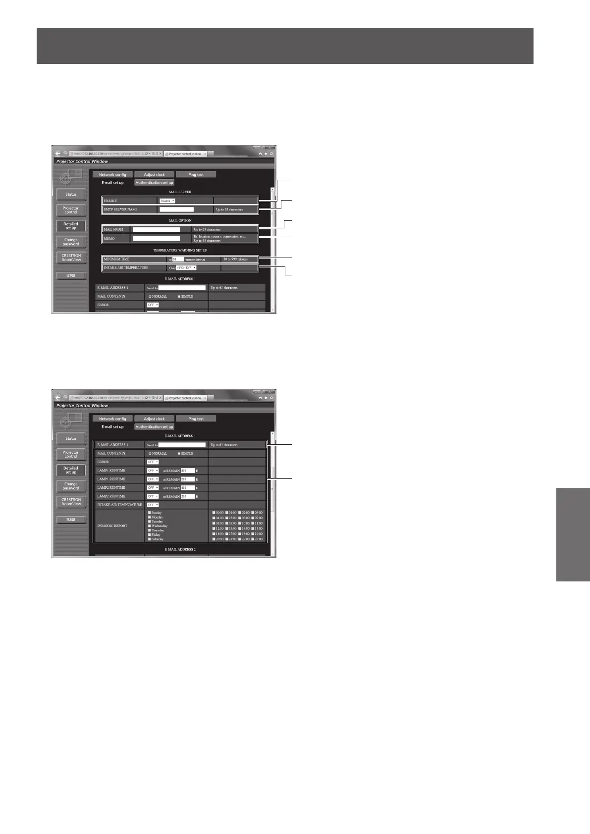Enter the E-mail address of the projector. (Up to 63