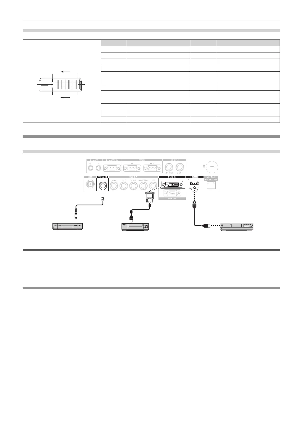 f The <DVI-D IN> terminal can be connected to HDMI- or DVI-D-compliant devices. However, images may not appear or may not be