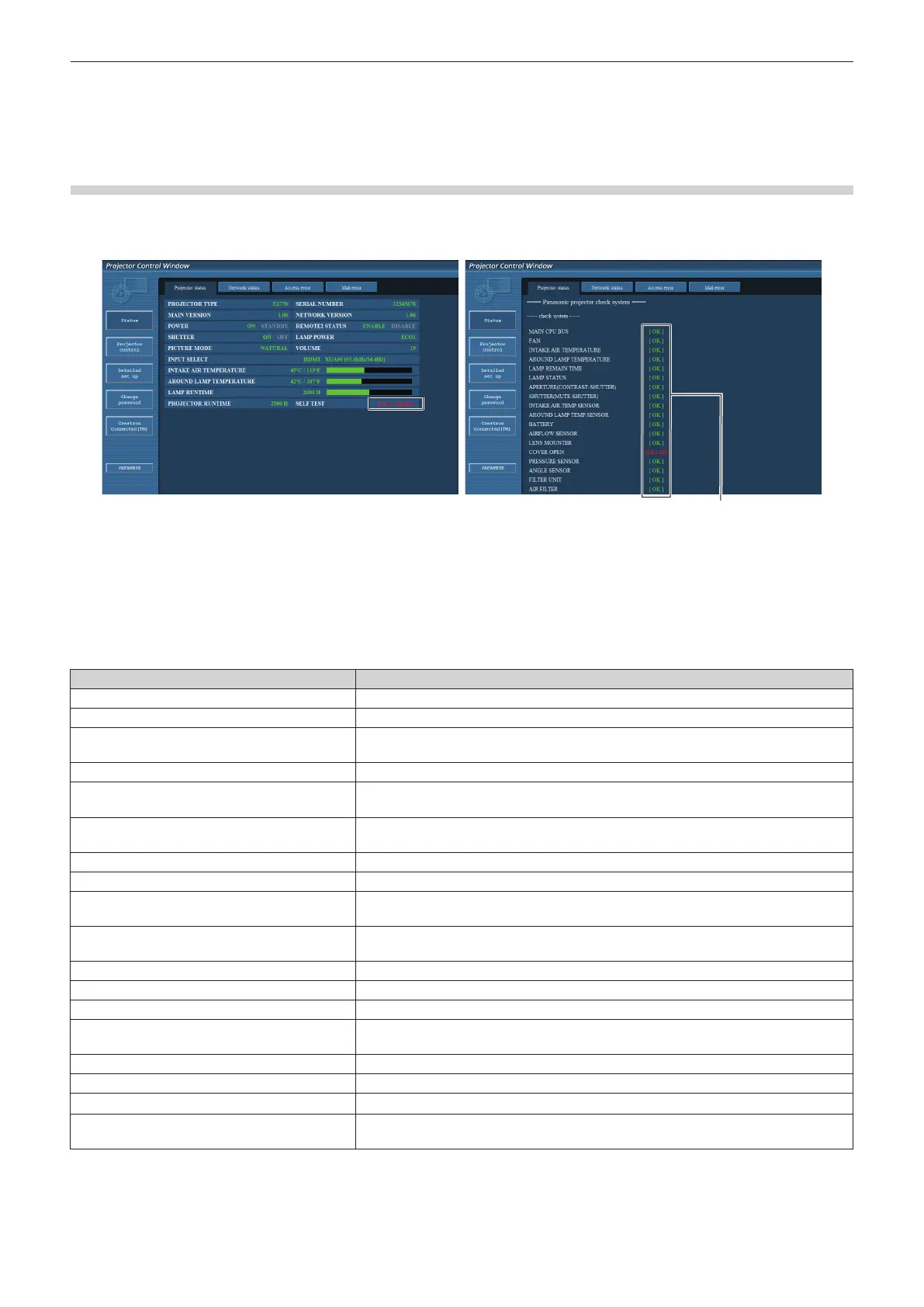 When [Error (Detail)] or [Warning (Detail)] is displayed in the self-diagnosis display of the [Projector status] screen, click it to display the