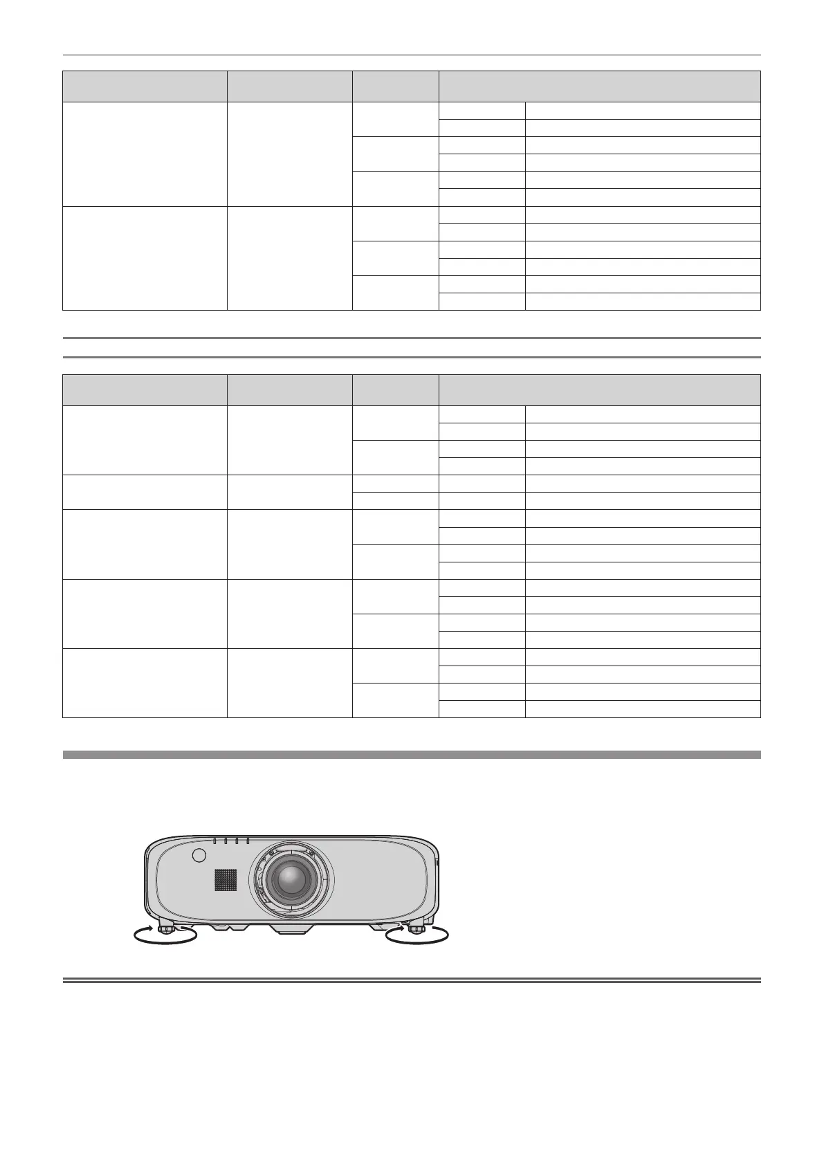 Extend the adjustable feet by rotating in the direction shown in the gure and retract by rotating in the opposite direction.