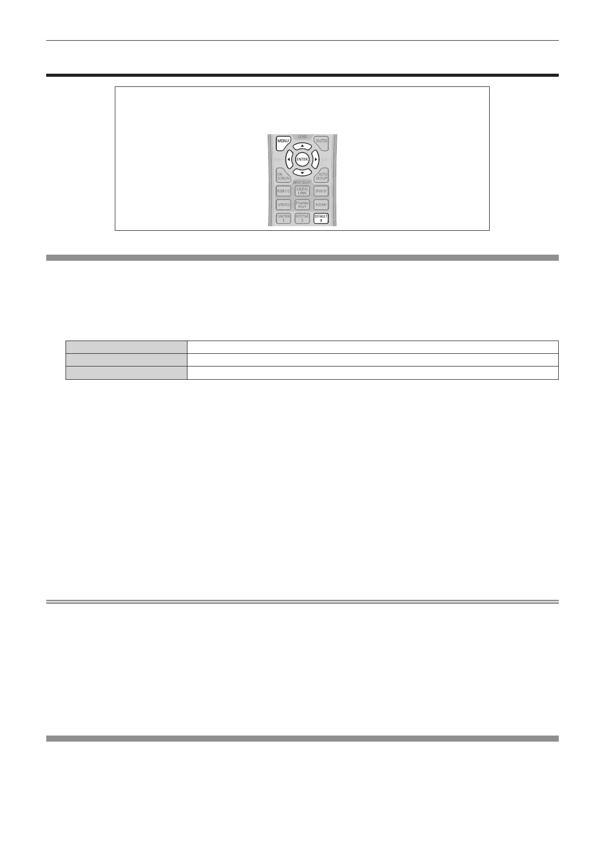 f Pressing the <DEFAULT> button on the remote control will restore the factory default settings for all items.
