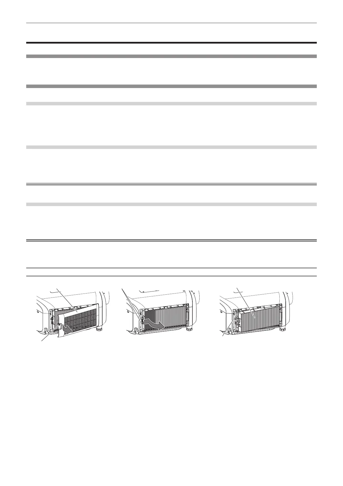 f After pulling out the air lter unit, remove foreign objects and dust from the air lter unit compartment and the projector’s air intake port