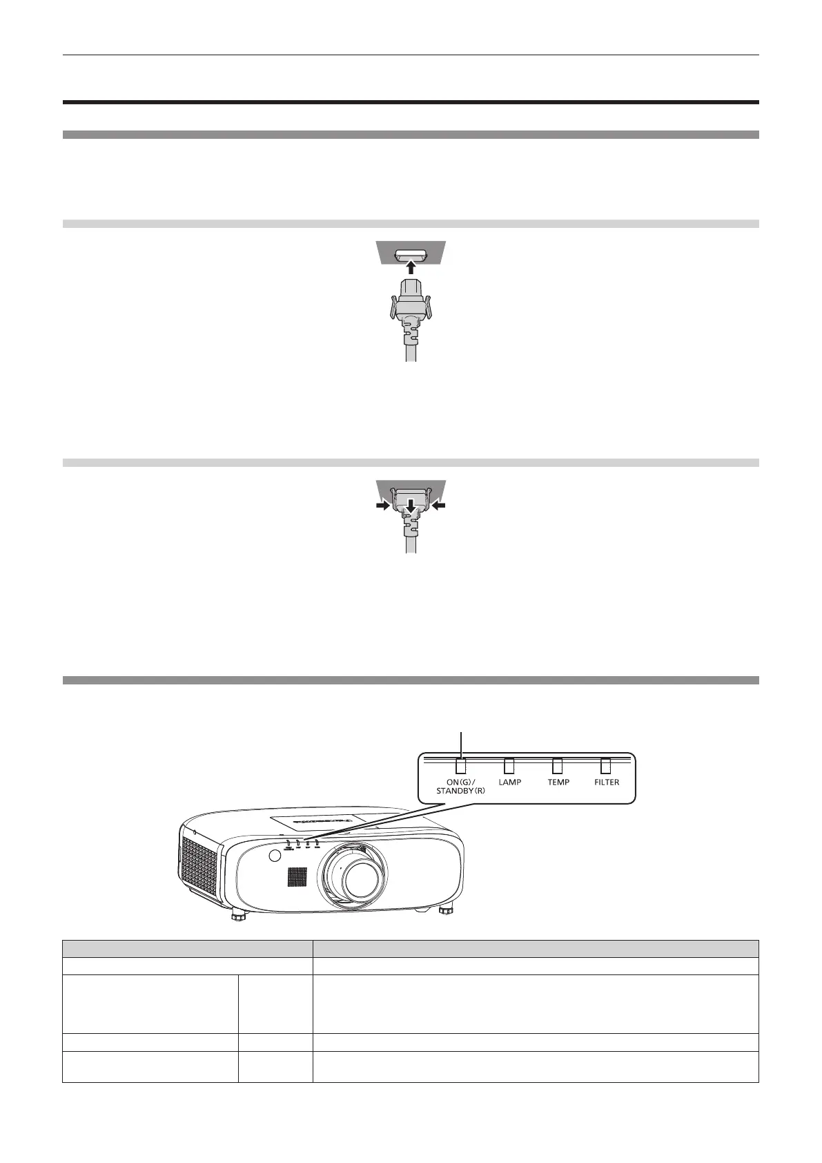Make sure that the supplied power cord is securely xed to the projector body to prevent it from being removed easily.