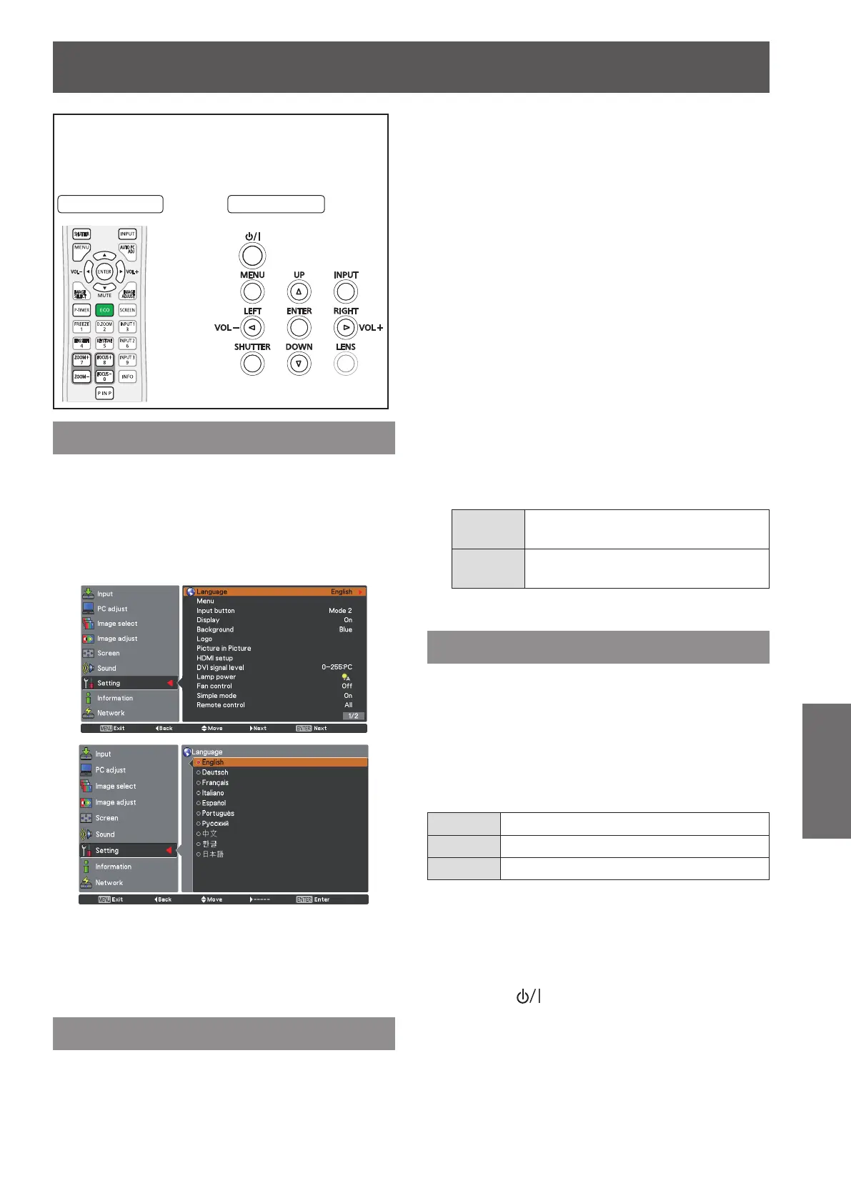 Press ▲▼ to select [Input button].1 )
