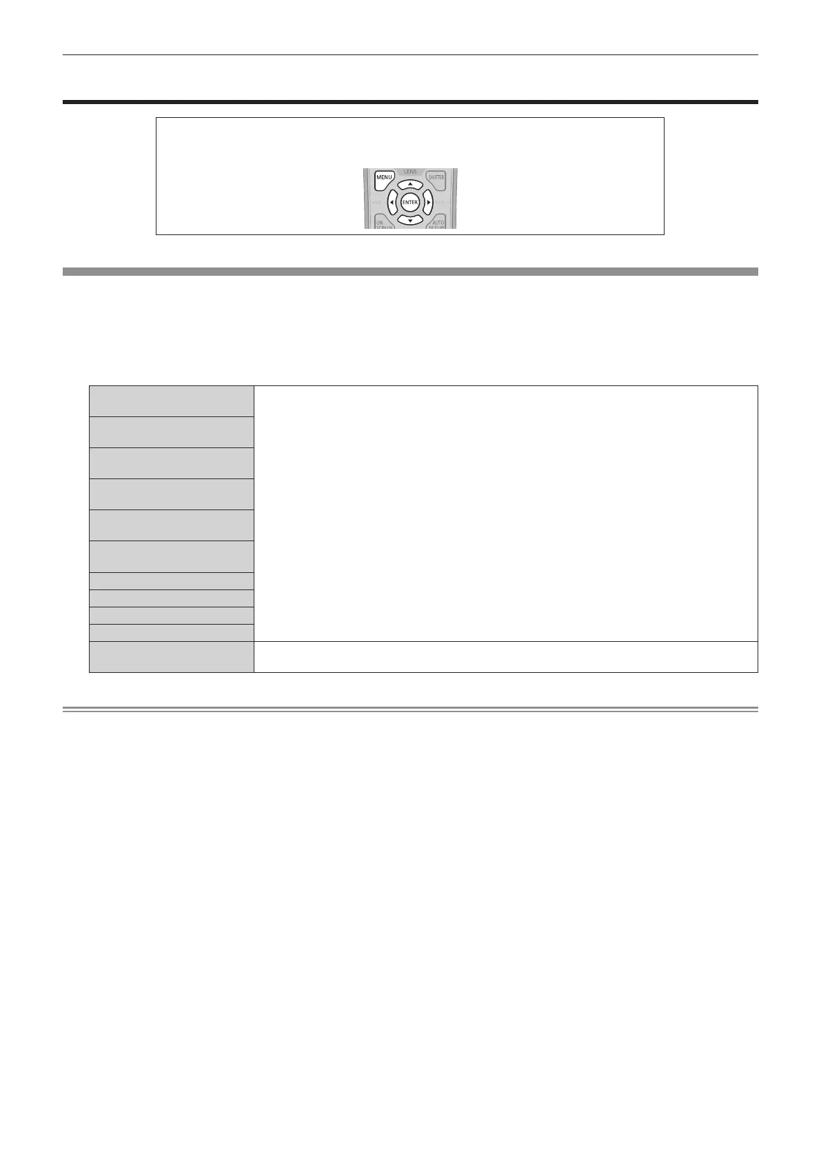 Refer to “Navigating through the menu” (x page 57) for the operation of the menu screen.