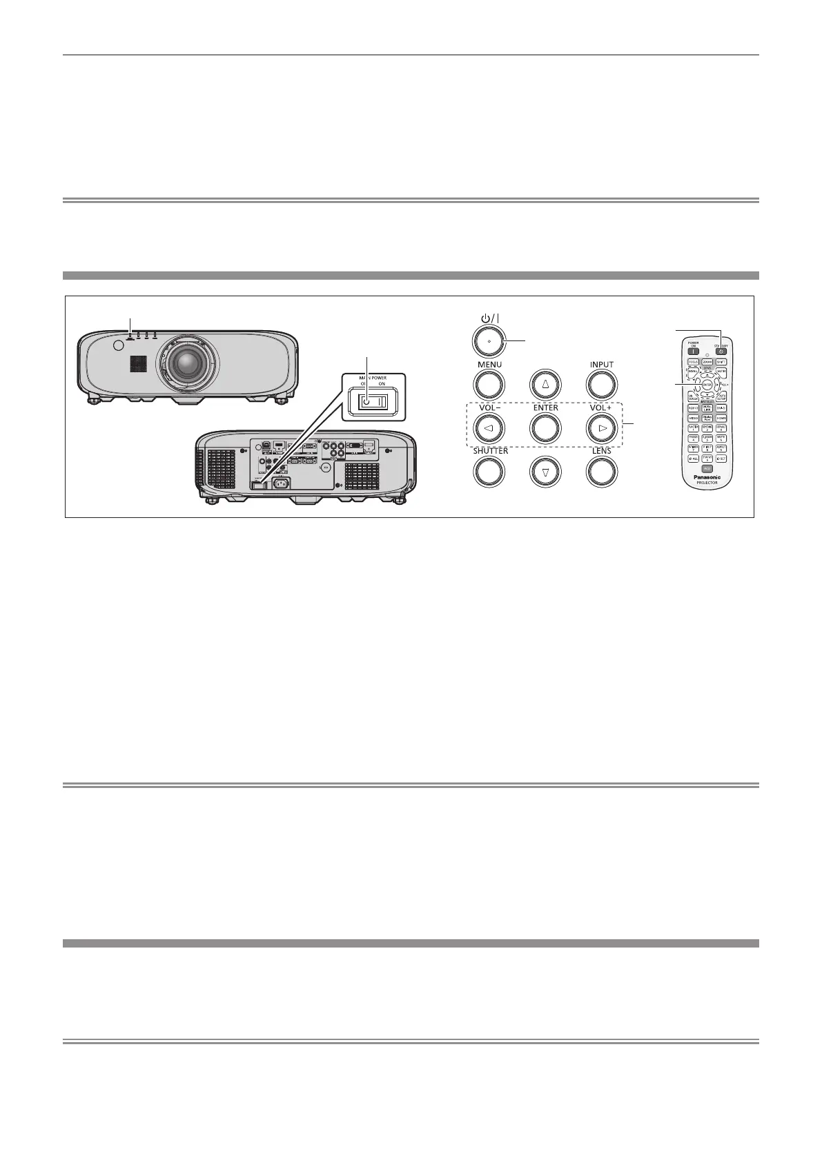 f If the projector was turned off by turning off the circuit breaker directly during projection last time, then the power indicator <ON (G)/