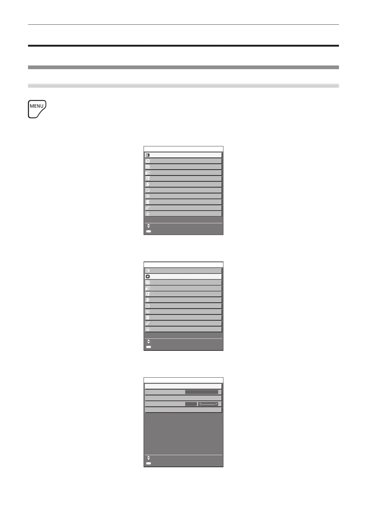 The on-screen menu (Menu) is used to perform various settings and adjustments of the projector.