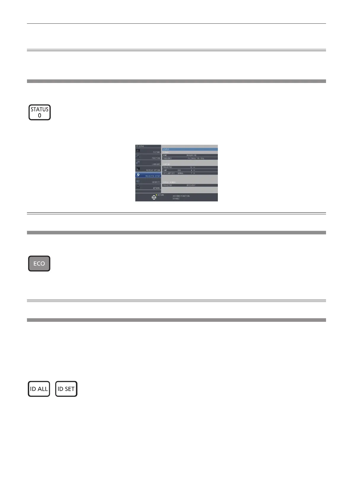 The factory default ID number of the projector is set to [ALL]. When using a single projector, press the <ID