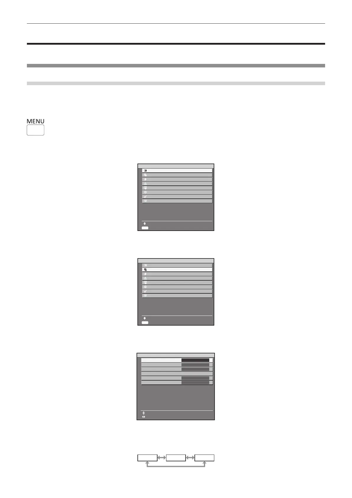 When the projection mode is set to the projector mode, the [LIGHTING] menu is not displayed. Press the