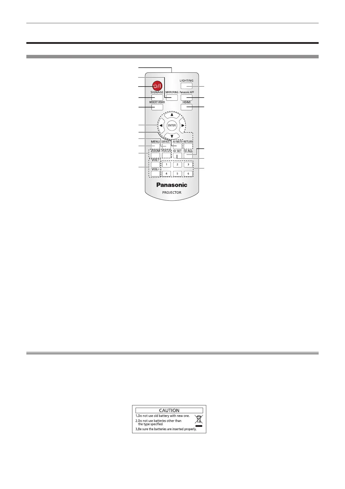 f Observe the following instructions that are indicated on the caution label at the back of the remote control: