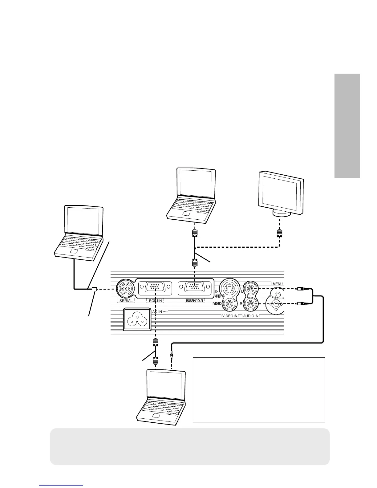 B Do not input the signal to the RGB2 IN/1 OUT connector when “RGB2