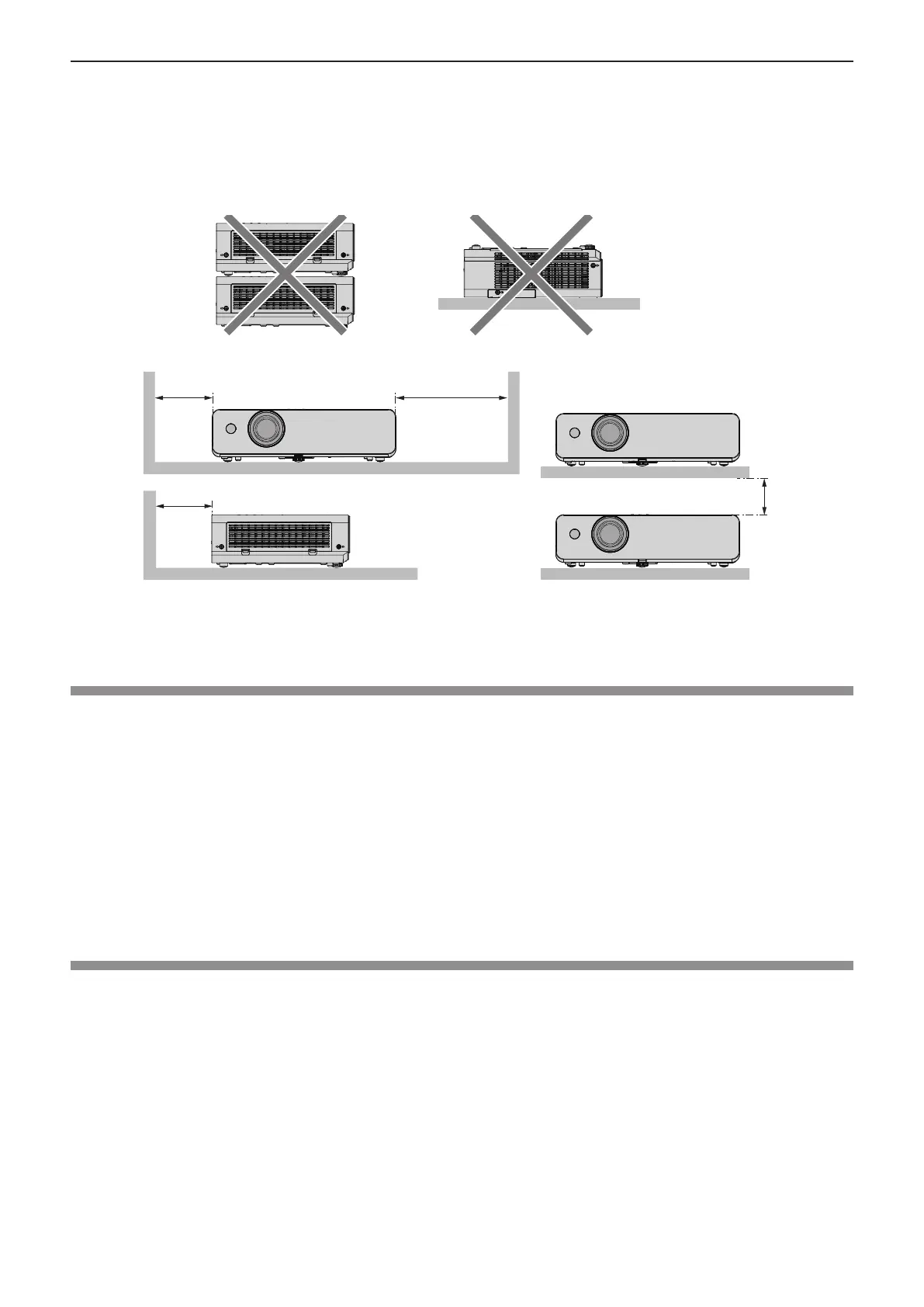 When placing the projector in a conned space, a ventilation and/or air conditioning system is required. Exhaust heat may
