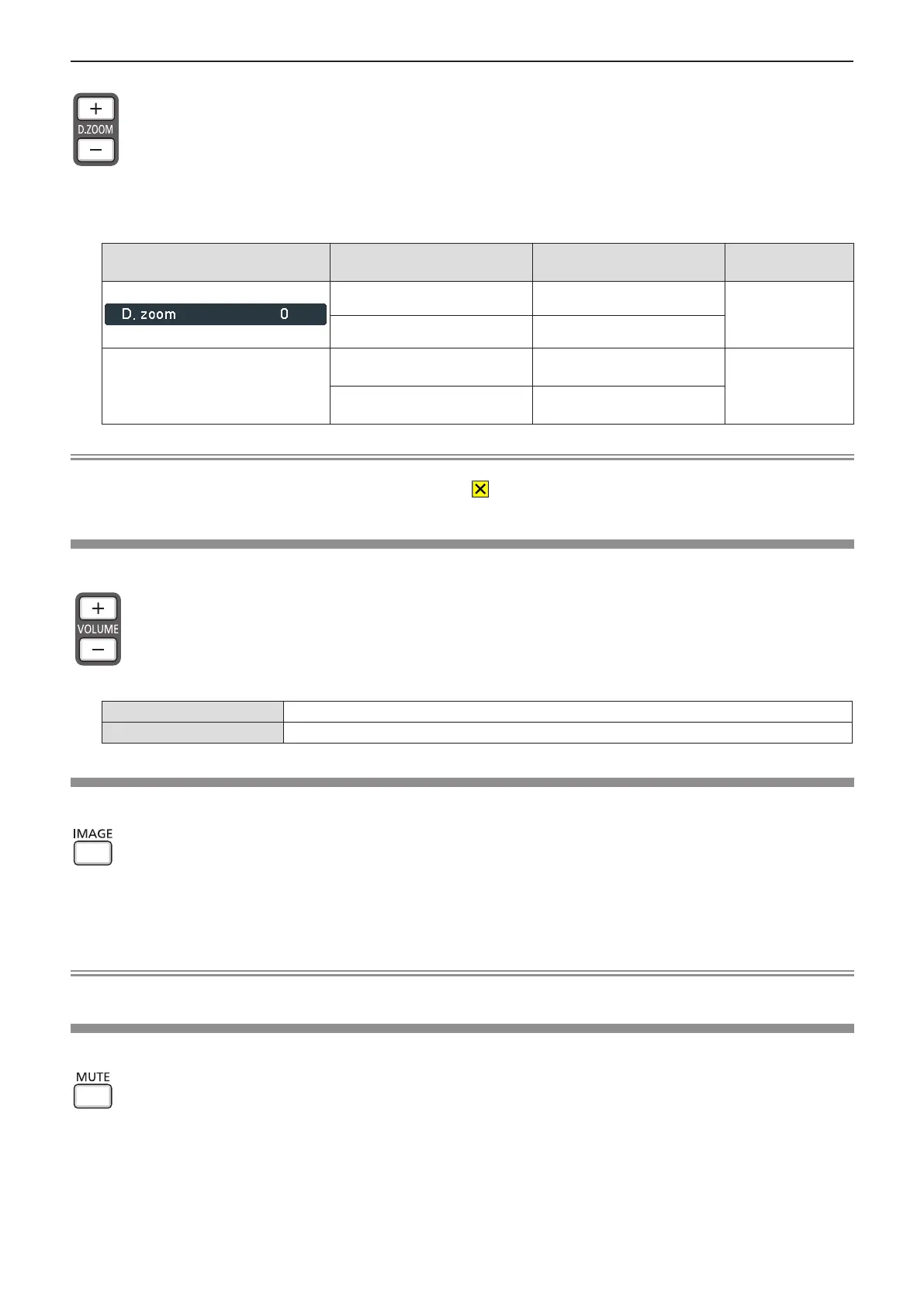 f When the input signals change during [D. zoom], the adjusted value of the digital zoom will be cancelled.