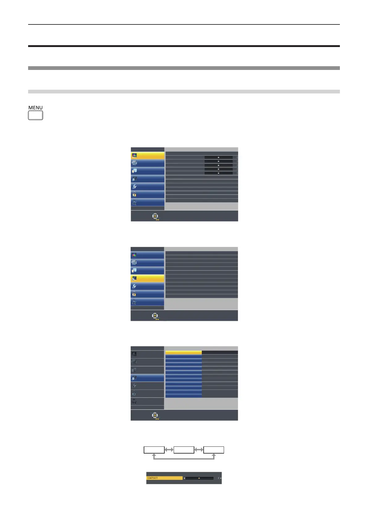 The on-screen menu (Menu) is used to perform various settings and adjustments of the projector.