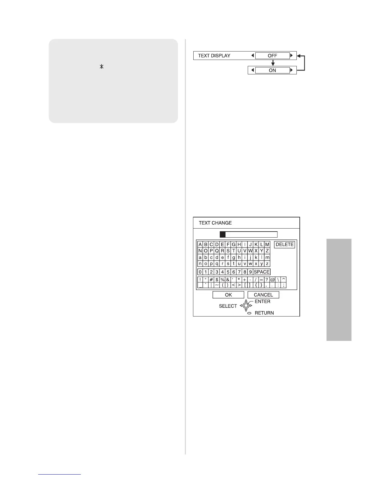 “TEXT DISPLAY” is set to “ON” can