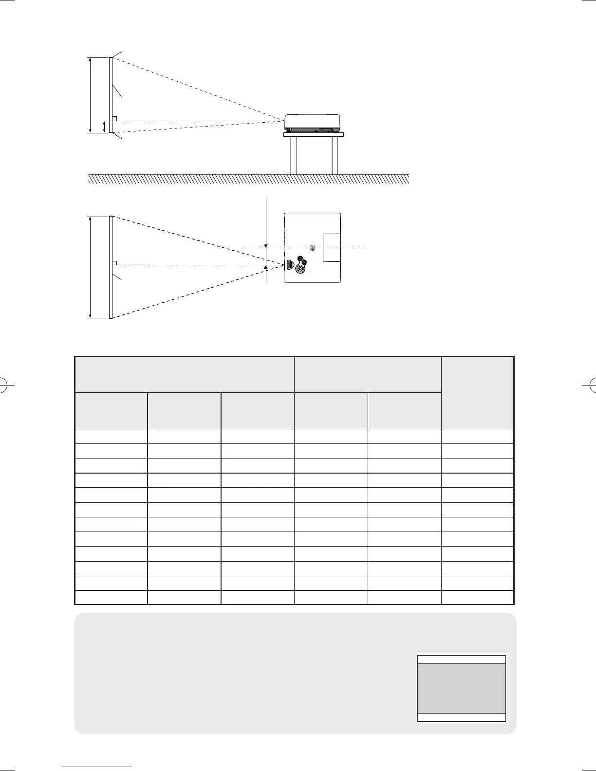 B For details about projected image distances, refer to