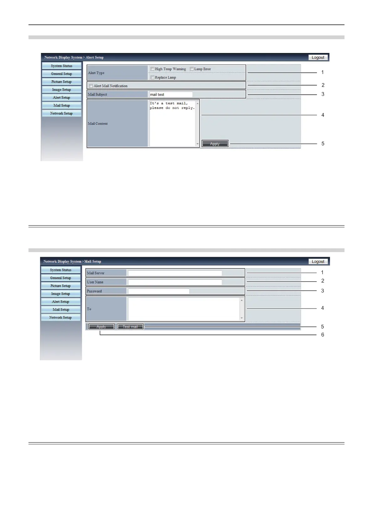 Set the contents of the E-mail to inform the abnormality of the projector.