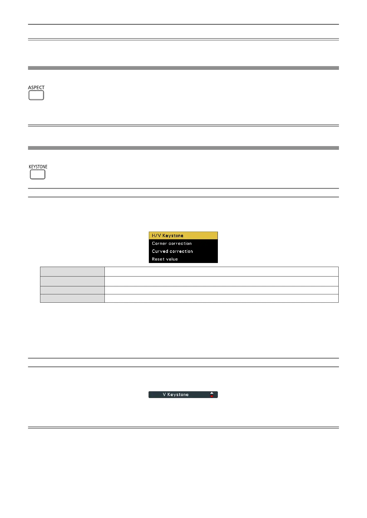 - [H/V Keystone] [Corner correction] (Upper left) [Corner correction] (Upper right) [Corner correction] (Lower right)