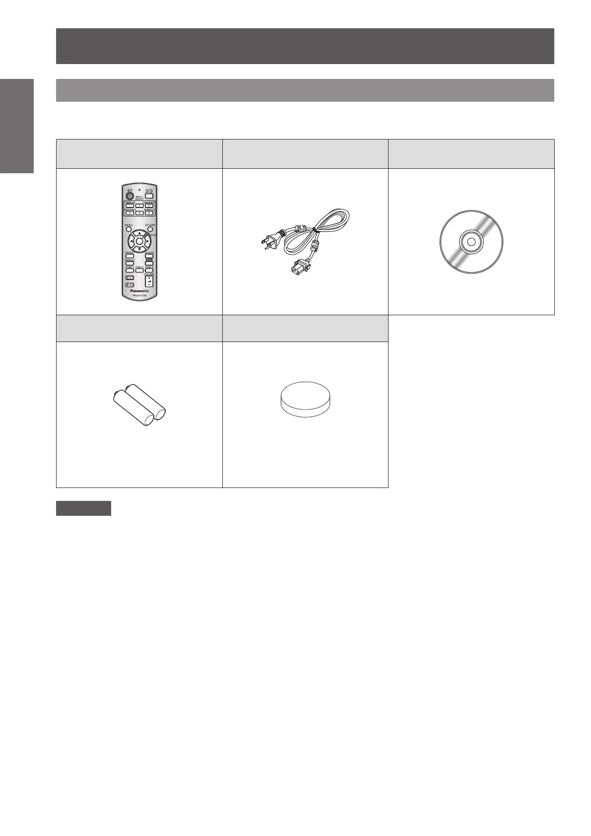 Make sure that the following accessories are provided with your projector. Numbers in the brackets ( ) show the