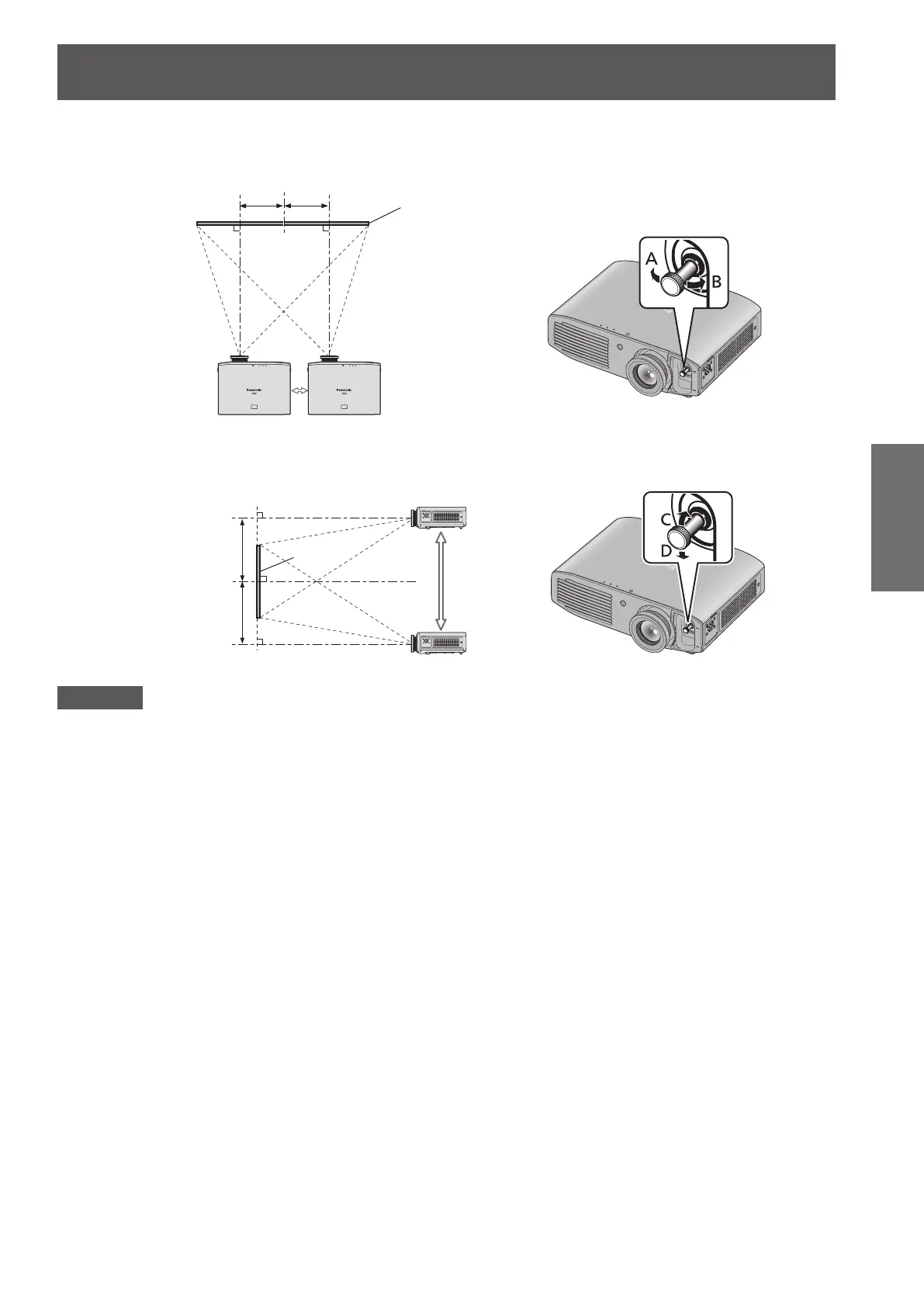 When adjusting the horizontal position, move the lens shift lever horizontally.