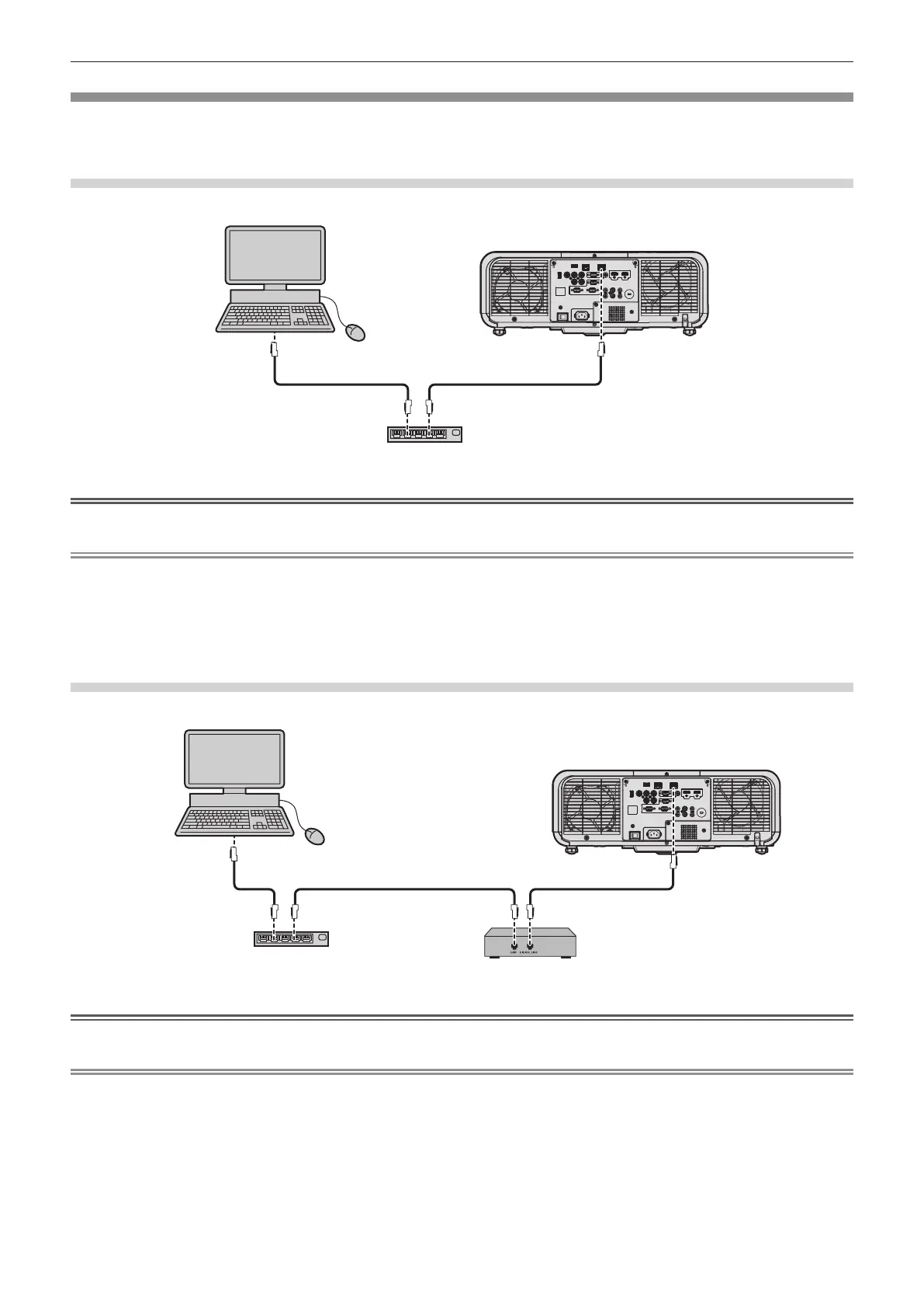 f Connect a LAN cable to send and receive the Ethernet signal to the <LAN> terminal or the <DIGITAL LINK/LAN> terminal of the projector.