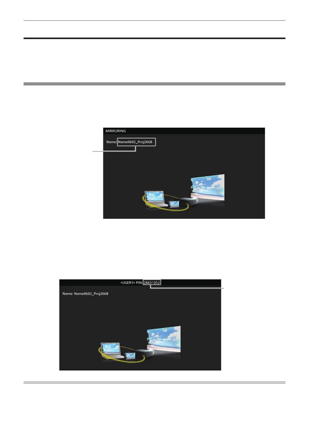 f When the [NETWORK/USB] menu [MIRRORING] [CONNECTION TYPE] is set to [PIN], entry of PIN