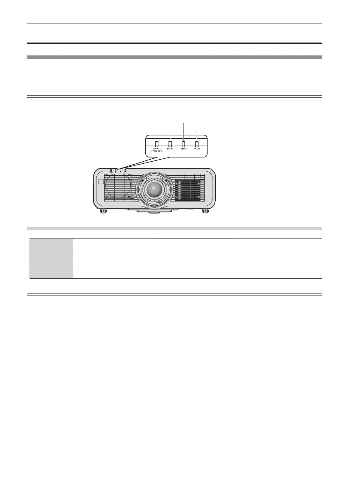 f When the projector is in projecting state and there is no notication by illuminating or blinking in red, the light source indicator <LIGHT> is