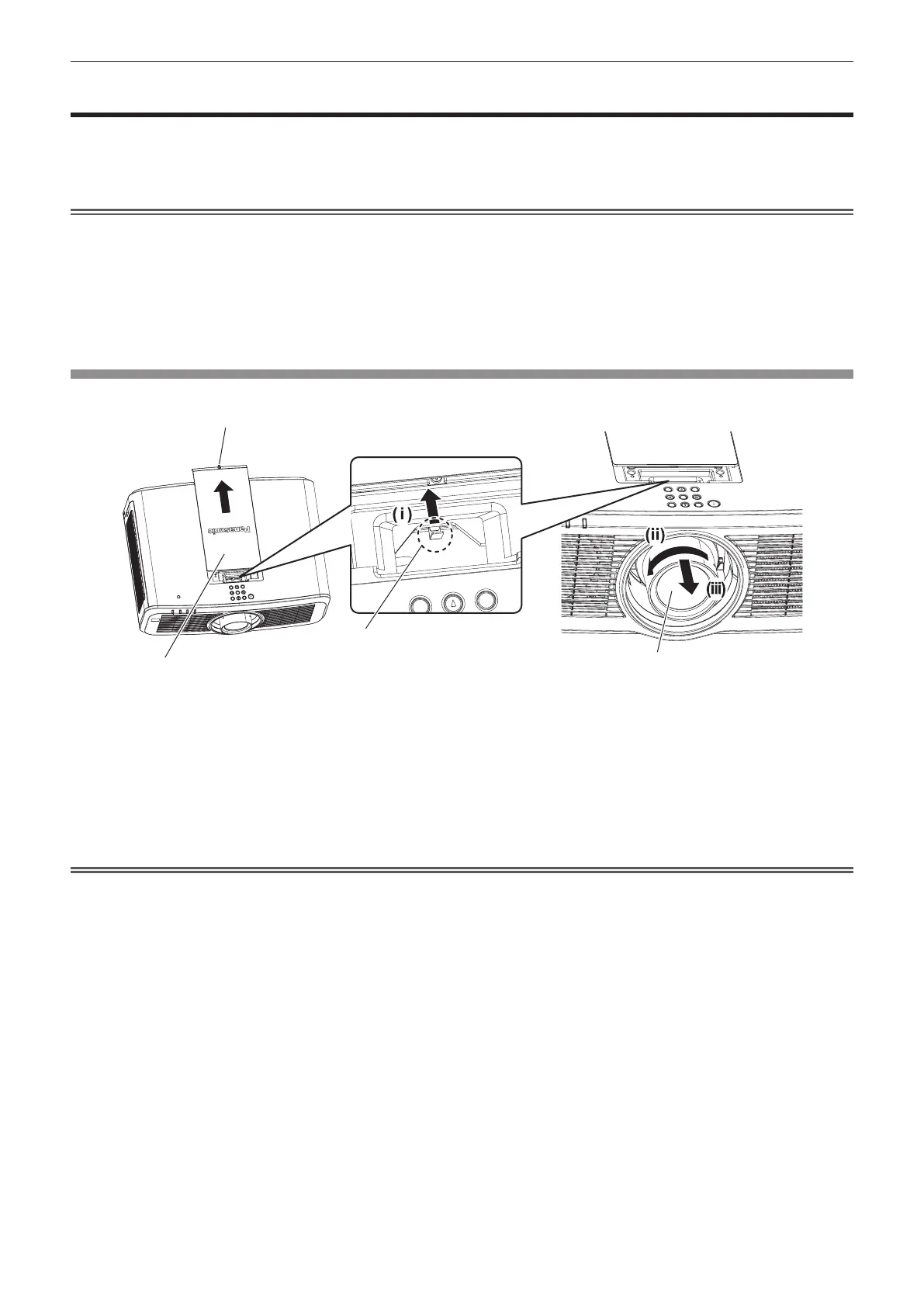 f Before attaching the projection lens, remove the lens cover attached to the projection lens.