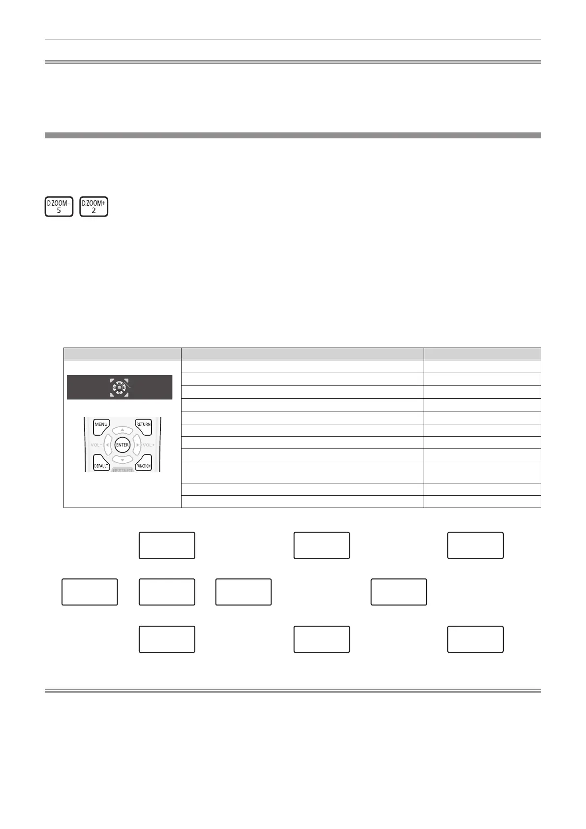 f The adjustment value of the digital zoom is canceled when the type of input signal is changed while performing the digital zoom.