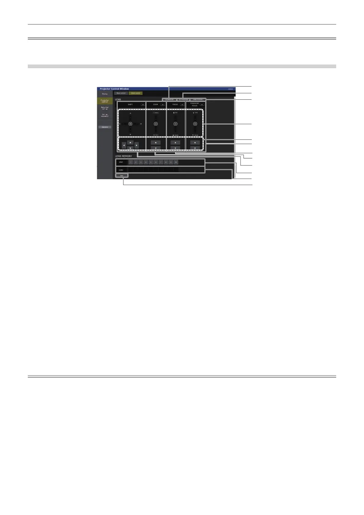 Adjusts the lens shift, zoom, focus and periphery focus by