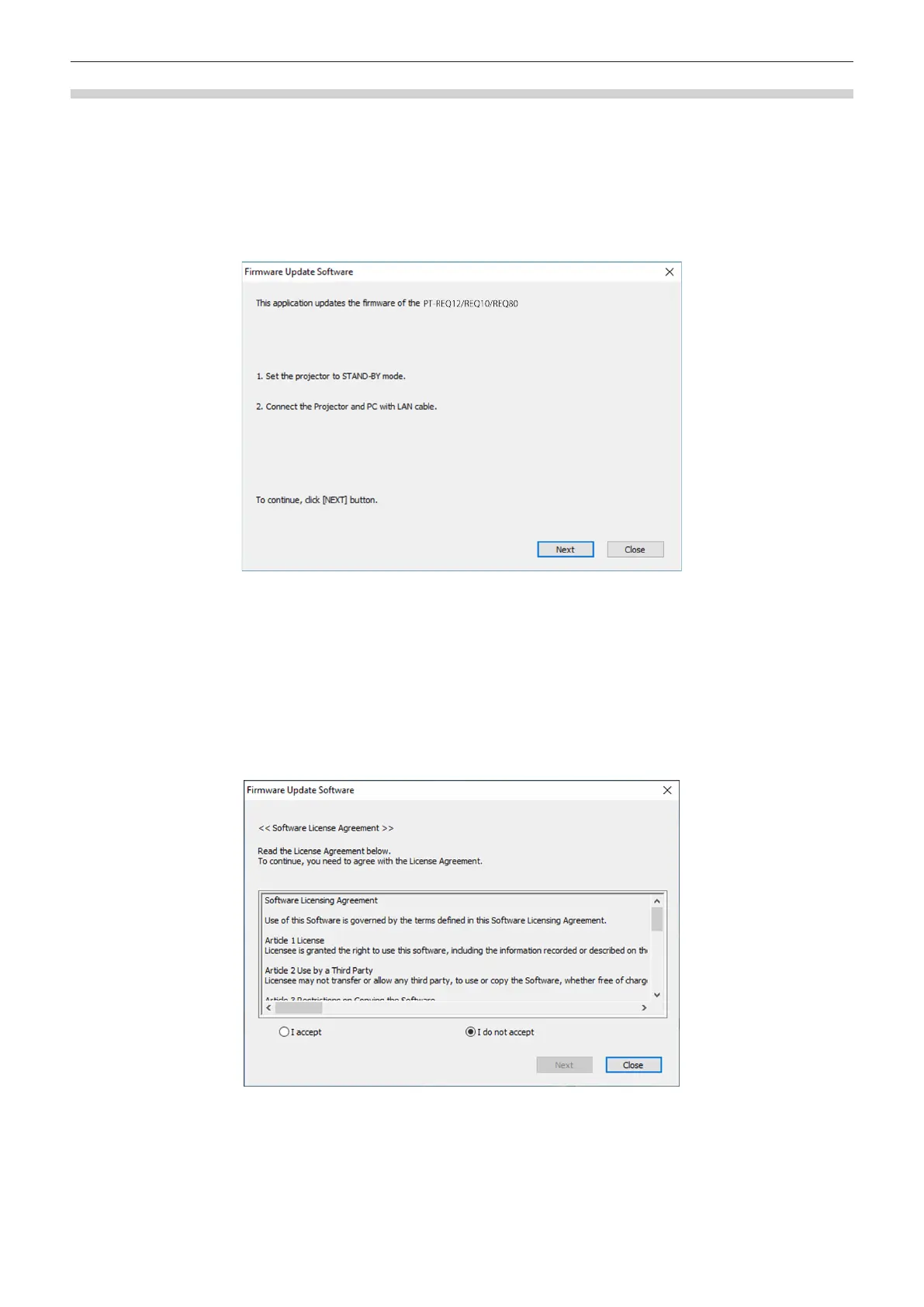 f Conrm that the projector to be updated and the computer to be used for update are correctly connected to