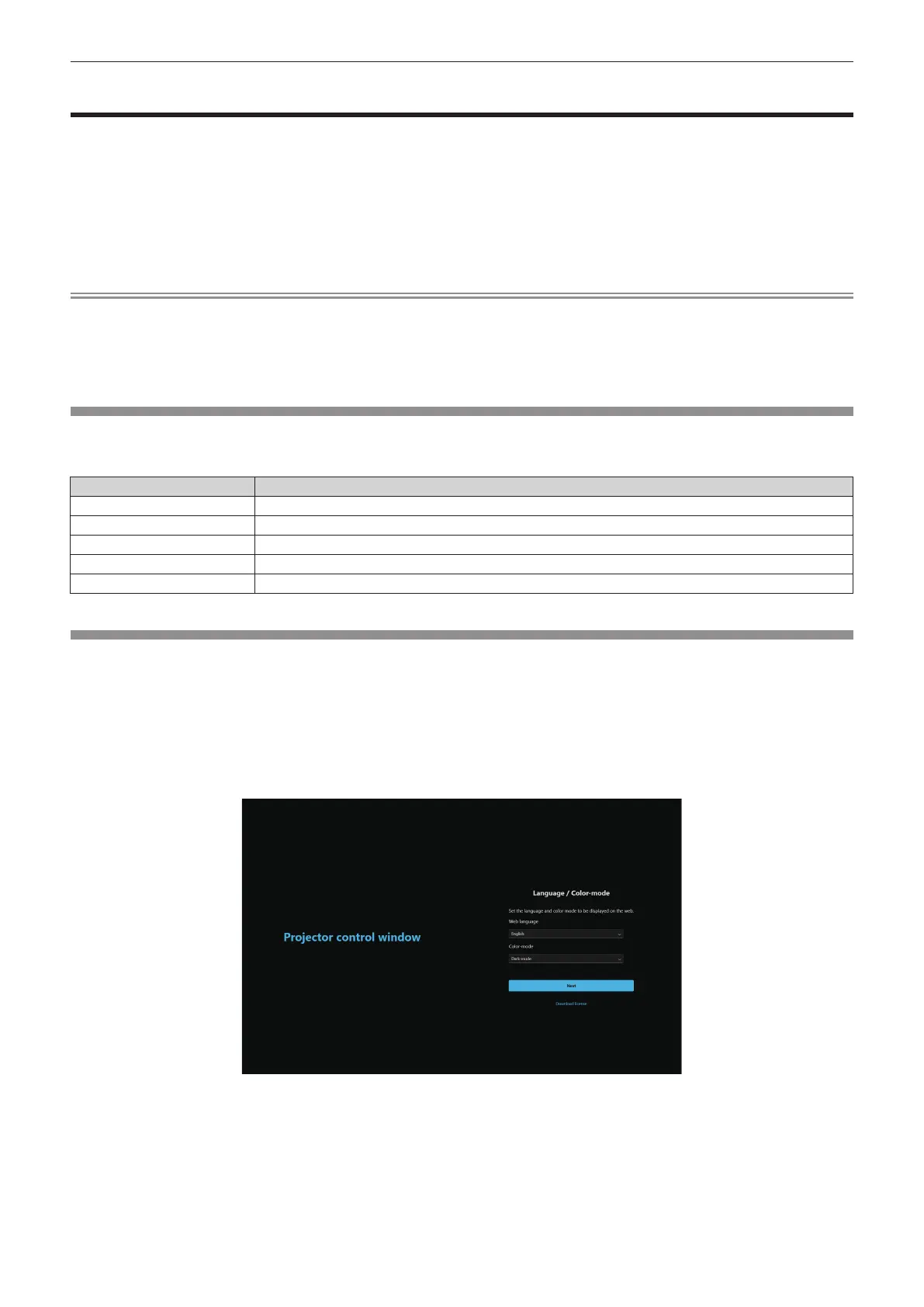 f When the administrator account is not set, the [Language / Color-mode] screen is displayed.