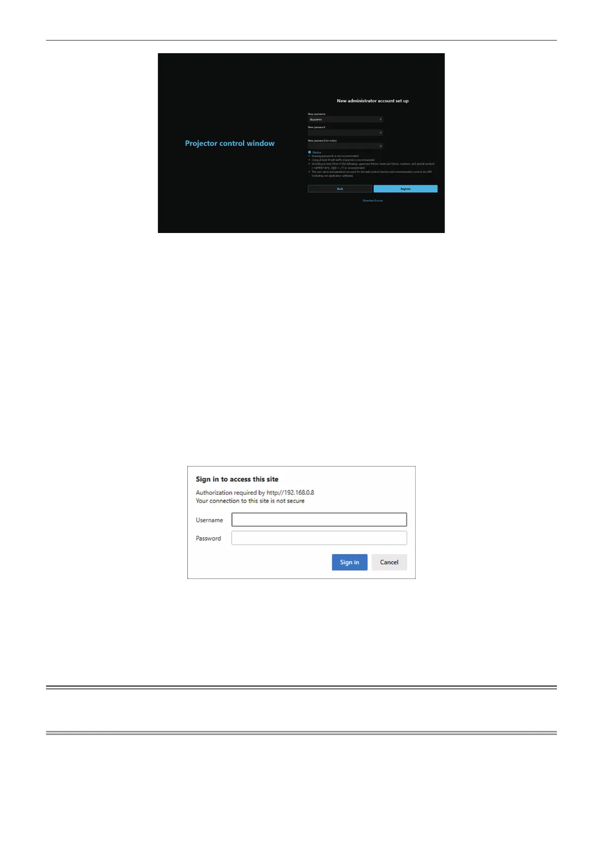 f Do not perform setting or control simultaneously by starting up multiple web browsers. Do not set or control the projector from multiple