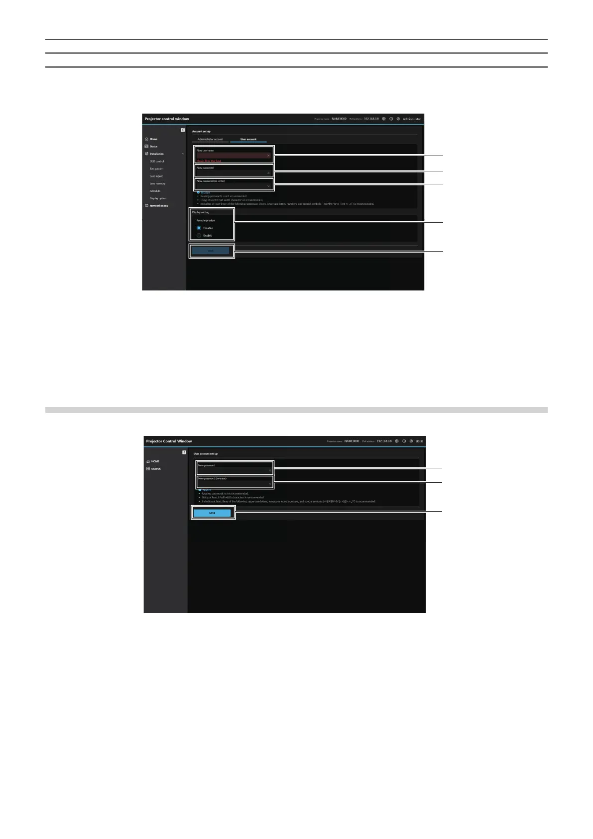 Set the user name, password and the display setting of remote preview function of the standard user account