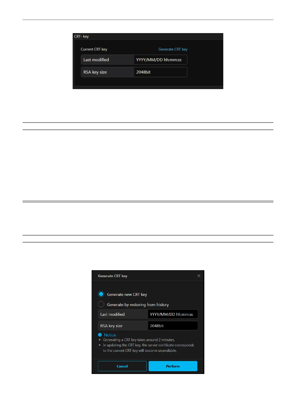f The previously generated CRT key will be moved to the history. To return to the previous CRT key, refer to