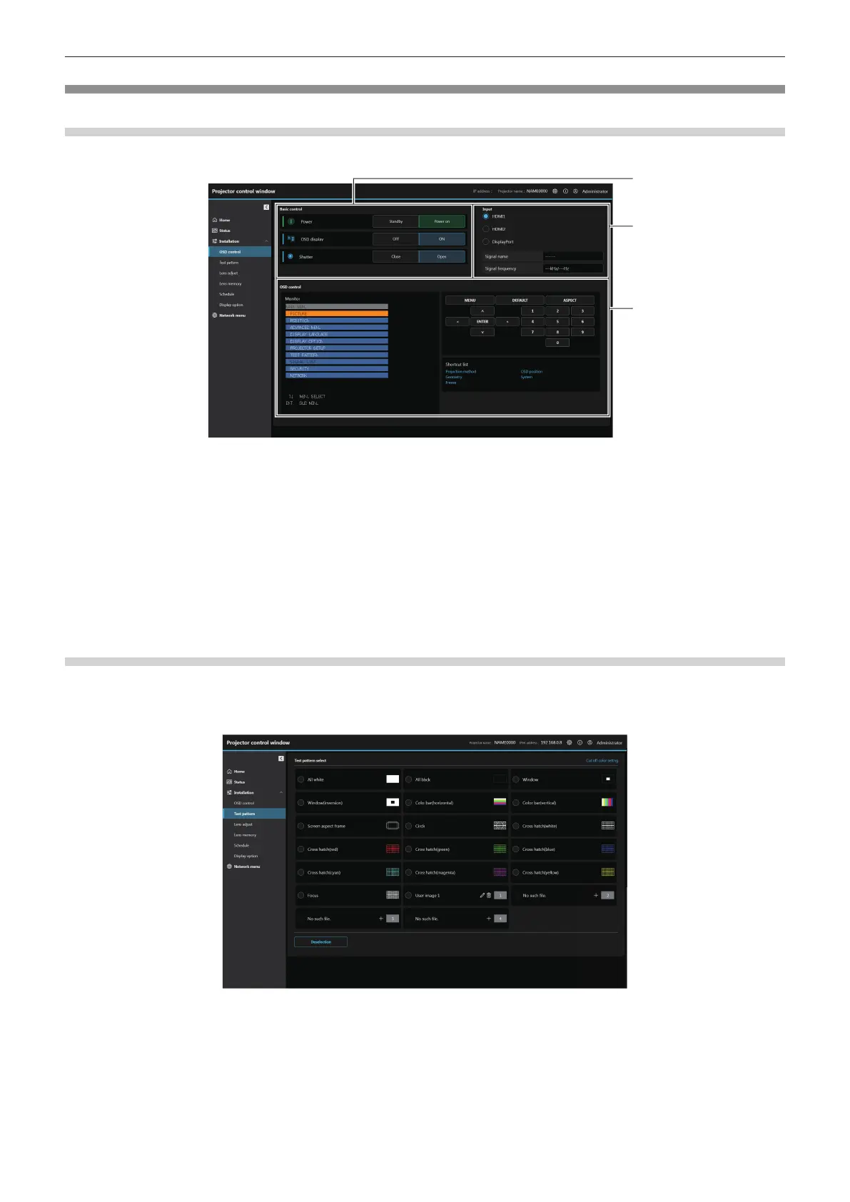 Click the test pattern to display in the projected image from the displayed test pattern. You can also register,
