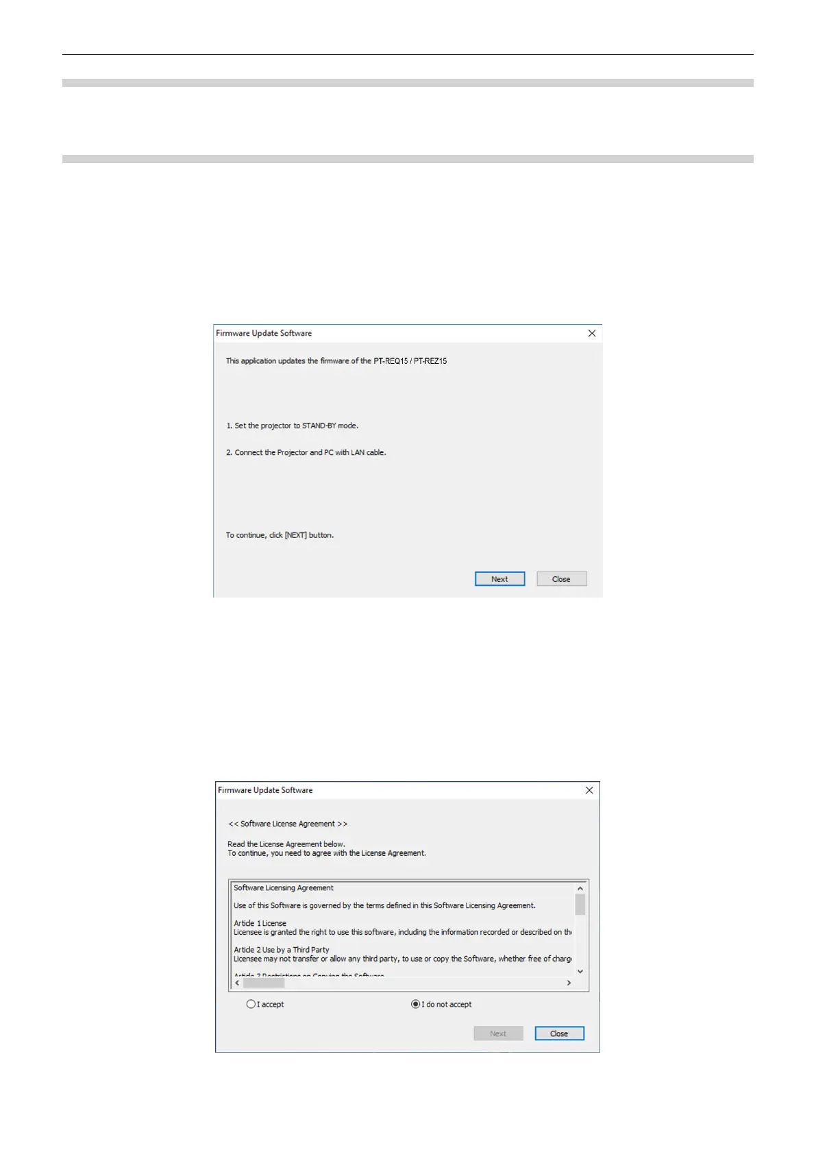 f Conrm that the projector to be updated is in the standby mode.