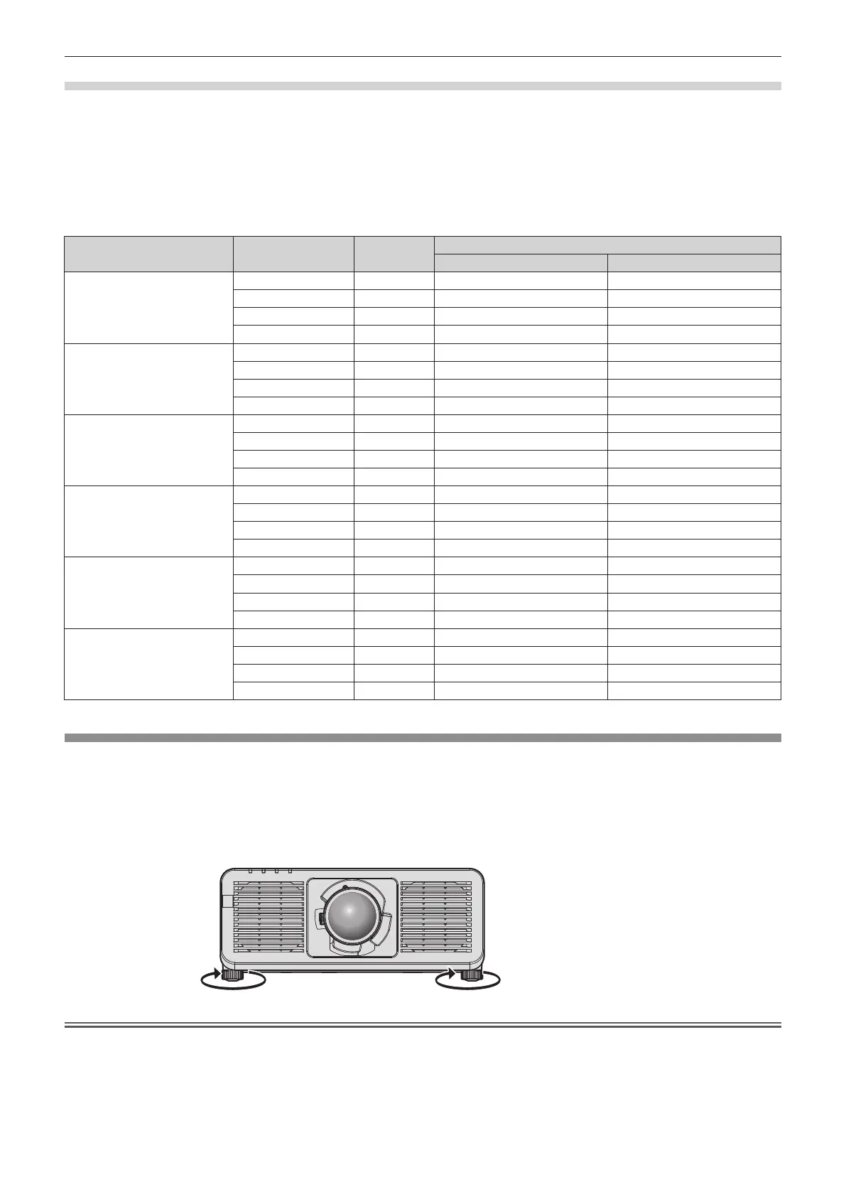 If the screen is tilted downward, extend the front adjustable feet so that the projected image becomes rectangular.